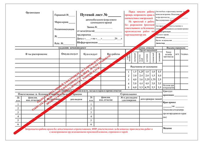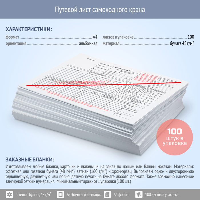 Путевой лист самоходного крана (упаковка из 100 штук) в Звенигороде купить